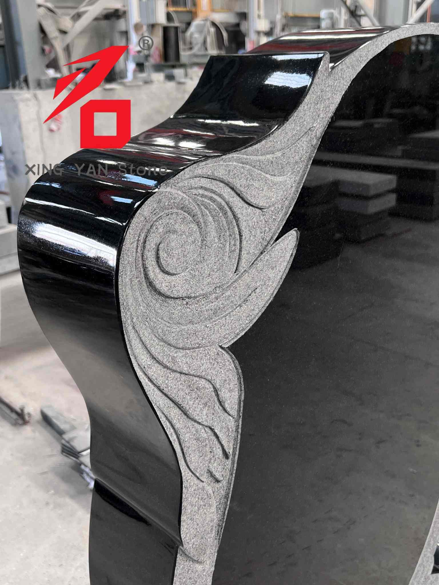 Designový styl: Tento design se odpoutá od tradičních rovných linií náhrobků a vyznačuje se plynulými křivkami a dvouvrstvým rolovaným vzorem, který hluboce spojuje vážnost pohřebních potřeb s uměleckým designem. Uspokojuje emocionální potřeby vzpomínek na zesnulé a zároveň předvádí špičkovou, přizpůsobenou estetiku.