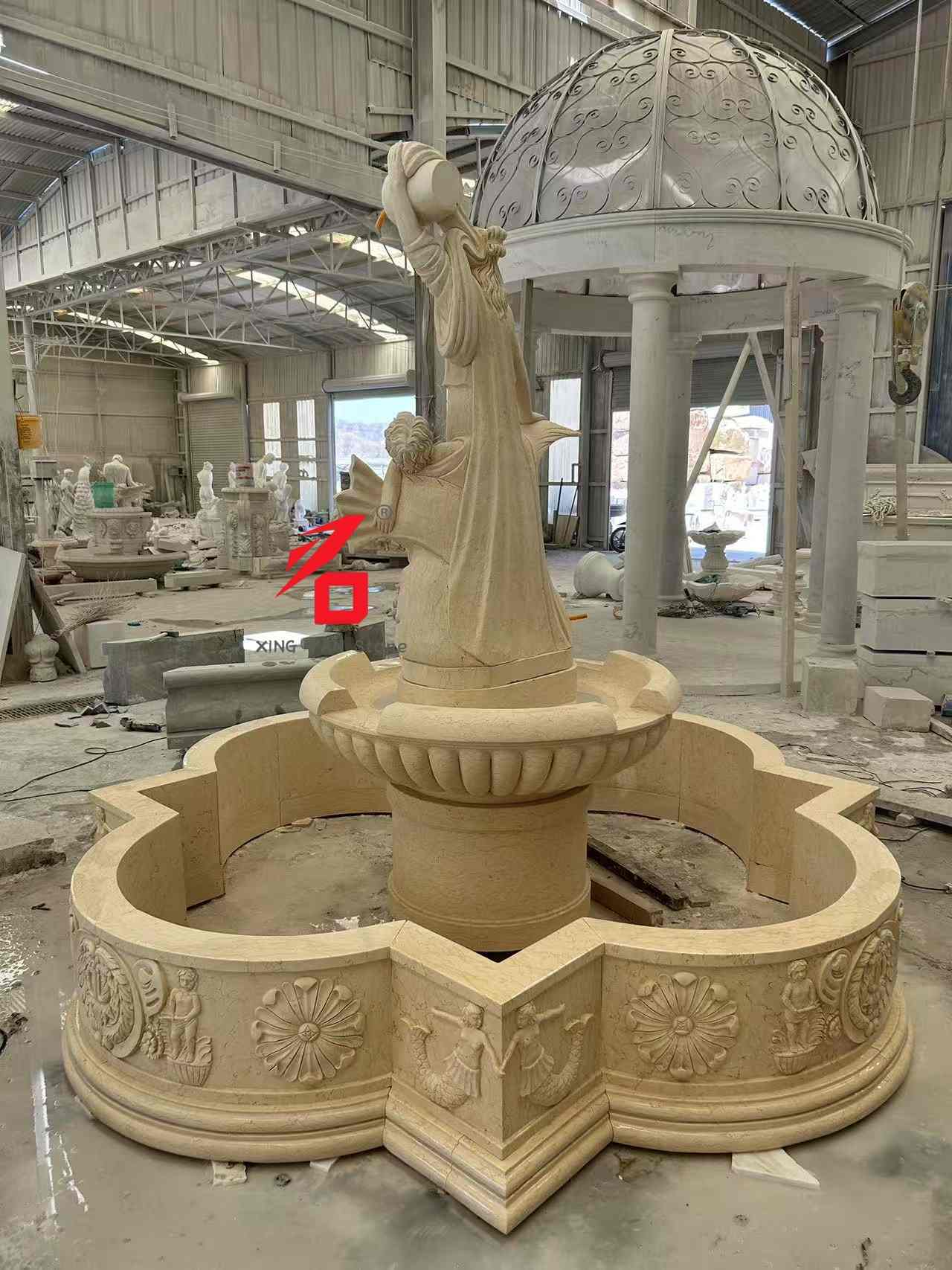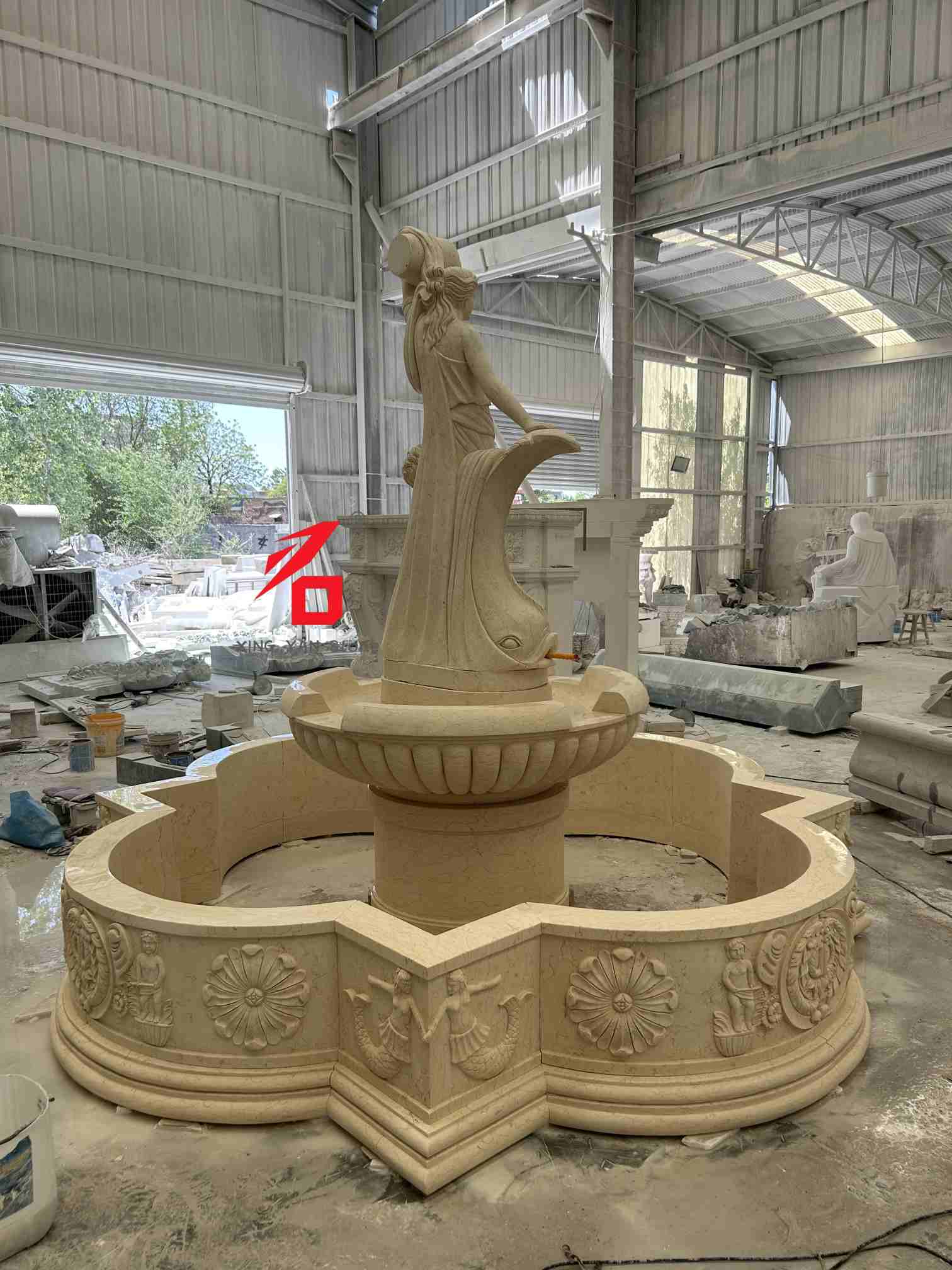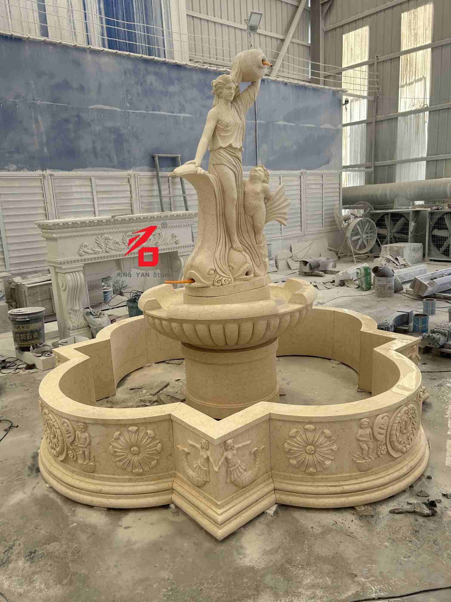 Možnosti kamene: Vlastní možnosti kamene zahrnují béžový mramor, bílý mramor, pískovec a další přírodní kameny. Jemná textura kamene, teplá barva a silná odolnost proti povětrnostním vlivům zajišťují trvanlivost a estetický vzhled fontány pro dlouhodobé venkovní použití. Řezbářské řemeslo: Zkušení sochaři s využitím tradičních technik ručního řezbářství pečlivě zpracovávají každý detail, od výrazu obličeje bohyně a drapérie až po ozdoby ve tvaru dítěte a ryb, předvádějící uměleckou texturu a trojrozměrnost evropského klasického sochařství.