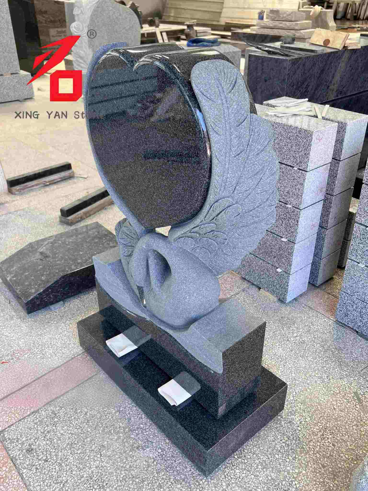 Design: Hlavní tělo je leštěné černé srdce, za nímž jsou vyřezaná realistická labutí křídla. Tvar labutě a srdce symbolizují věčnou lásku a vzpomínku na zesnulého. Celkový design je vysoce umělecký a odlišuje jej od monotónního stylu tradičních náhrobků.