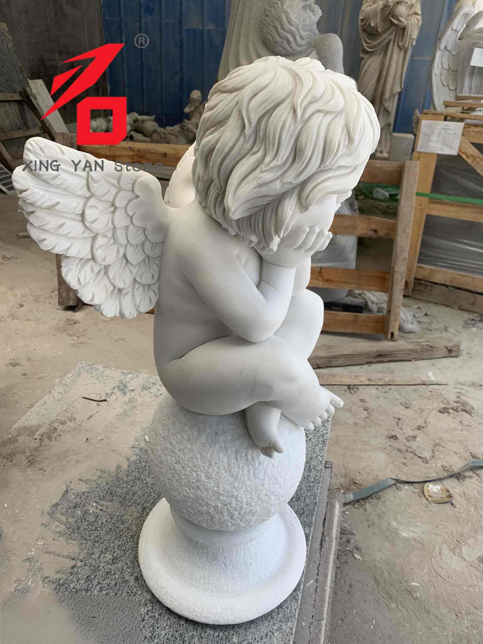 Styl designu: Přijetím evropského klasického stylu je cherub zobrazen v kontemplativní póze, ruce podpírající bradu, s klidným výrazem. Jeho křídla jsou jasně definovaná a struktura peří je výrazná, což vytváří celkový romantický pocit, který vyhovuje dekorativním potřebám evropských zahrad, náboženských míst nebo vzpomínkových prostor.